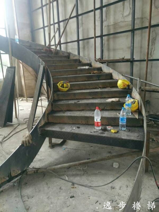 1、鋼架構(gòu)樓梯的主梁用8mm厚的鋼板組焊成箱形,二支箱形主梁之間用60x60x3mm的方管焊接煉成 一體。
