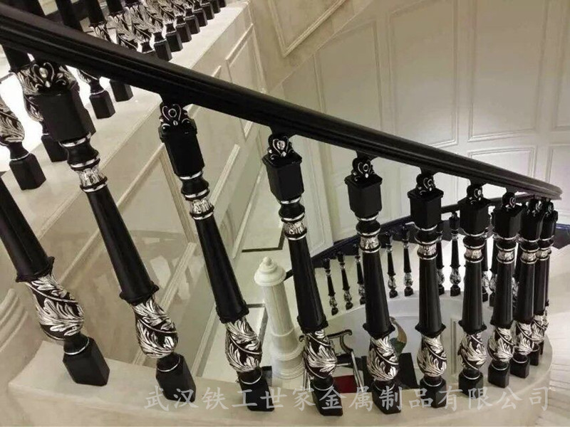 產(chǎn)品描述:該武漢旋轉(zhuǎn)樓梯鋁藝欄桿為12mm*250*10鋼板主大梁焊接組成,大理石踏板,鋁藝壓鑄欄桿扶手花型,款式,尺寸可以根據(jù)客戶需求開模定制雕刻,表面處理采用電鍍工藝,確保了表面鋁板的亮度光澤,此別墅欄桿制作復(fù)雜,對(duì)雕刻,打磨,拋光要求極高,適用別墅,復(fù)式樓,酒店,賓館樓梯欄桿扶手