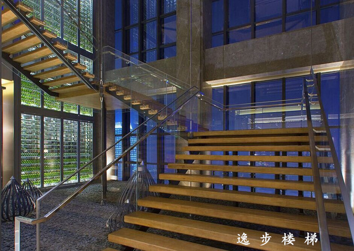1.全玻璃樓梯:樓梯的承重部分如踏步、欄桿、支柱和結(jié)構(gòu)梁以及扶手圍桿全部采用玻璃制作而成,只有少量金屬固定件或無固定件安裝。