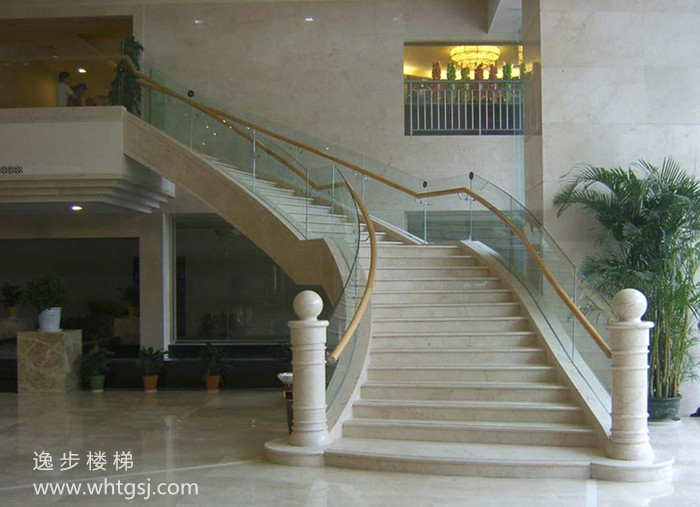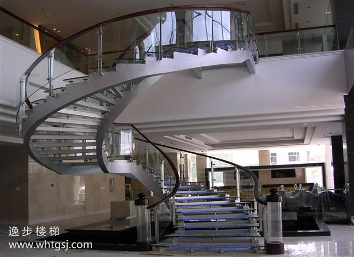 旋轉(zhuǎn)樓梯玻璃欄桿采用雙片12mm×400鋼板折彎,5mm鋼板為主框架(金屬佛碳漆),2