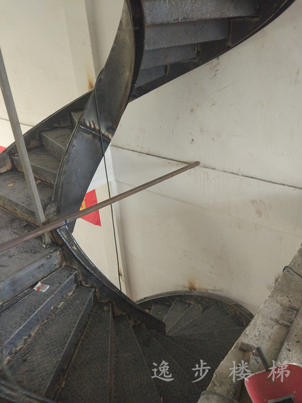 別墅鋼結構旋轉樓梯采用雙片10mm*250雙片鋼板折彎,5mm鋼板防滑板焊接組成,該旋轉樓梯制作工藝復雜,鋼板彎弧要求極高