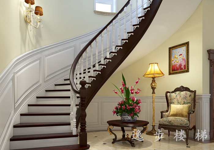 實(shí)木旋轉(zhuǎn)樓梯實(shí)木扶手采用進(jìn)口歐洲櫸木原木板為基材含水率嚴(yán)格控制在11%-13
